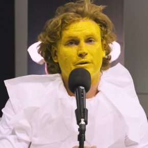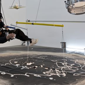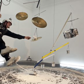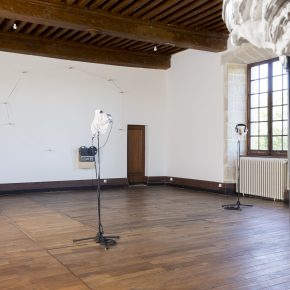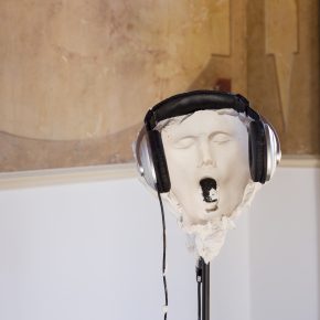 Plaster, microphones, 4 headphones, 4 microphone stands, real to real tape player, tape loop